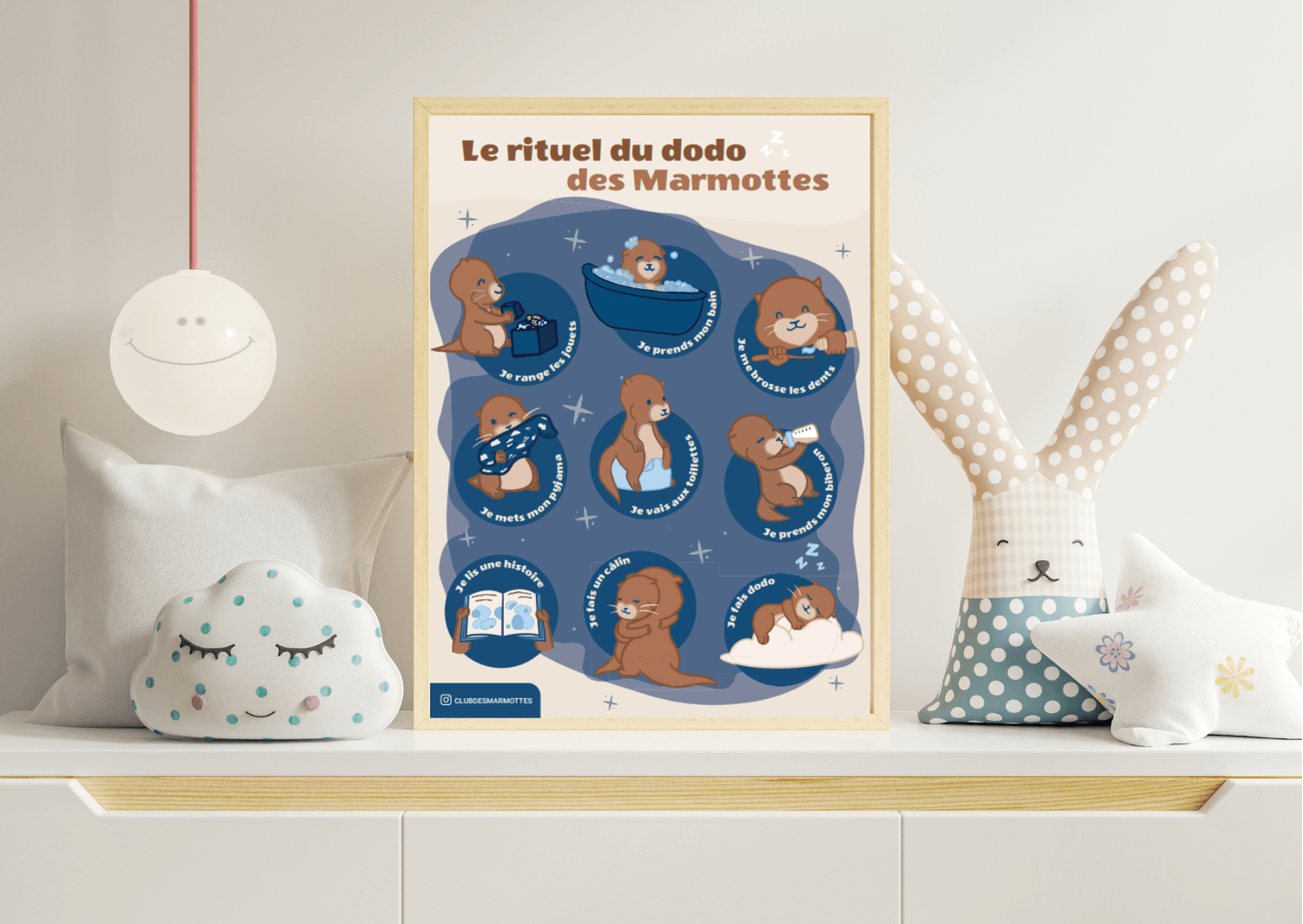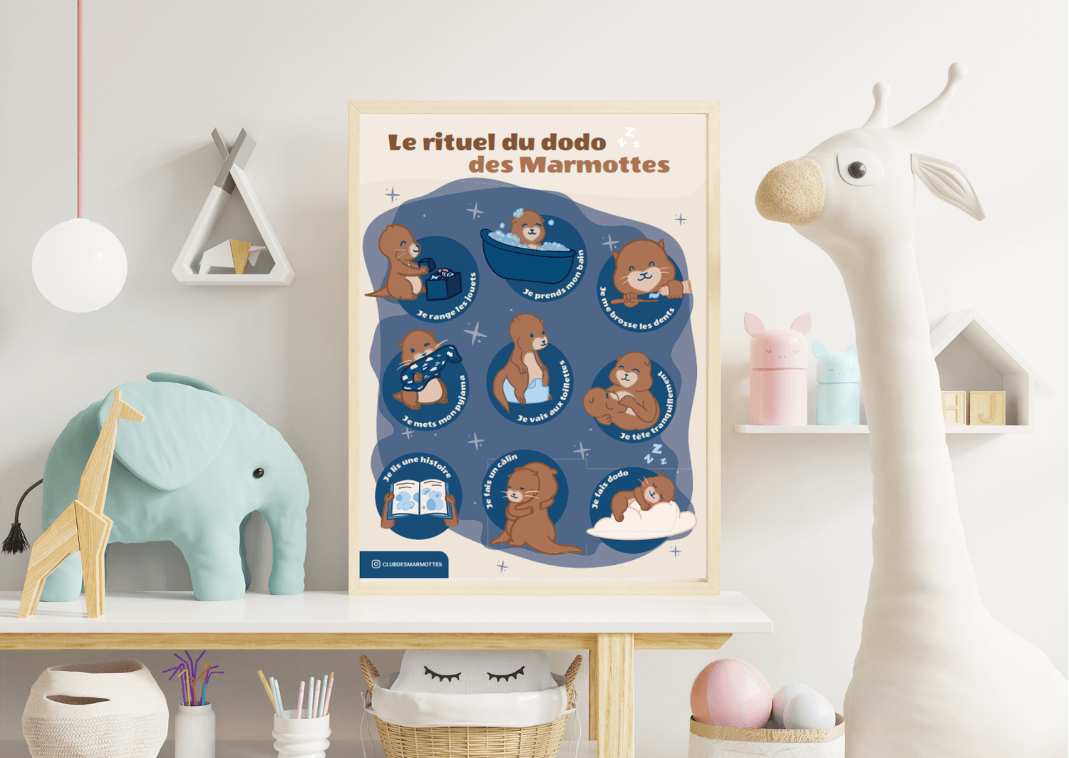 Une affiche pensée pour transformer l’heure du coucher en un moment doux et prévisible pour ton enfant.